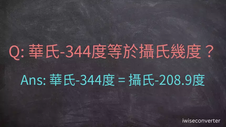 攝氏-208.9度乘以 9/5 後 + 32 等於華氏-344度。
