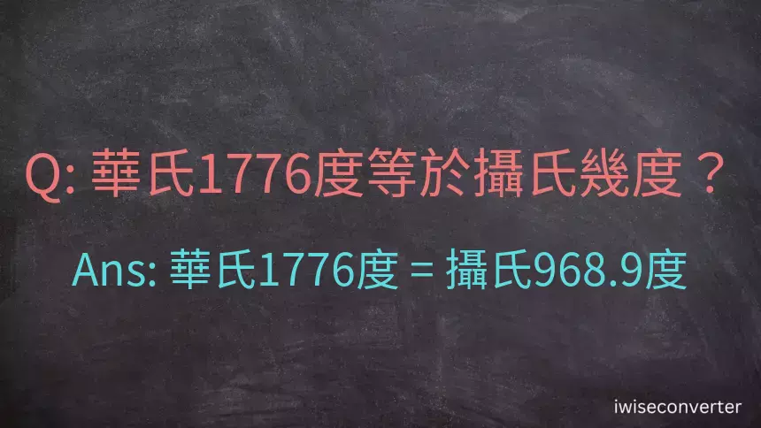 攝氏968.9度乘以 9/5 後 + 32 等於華氏1776度。