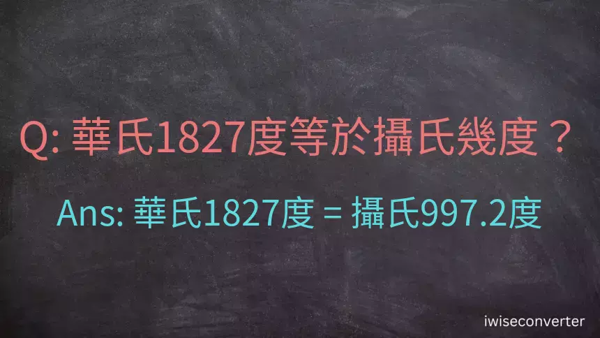 因此華氏1827度 - 32 後乘上 5/9 = 攝氏997.2度