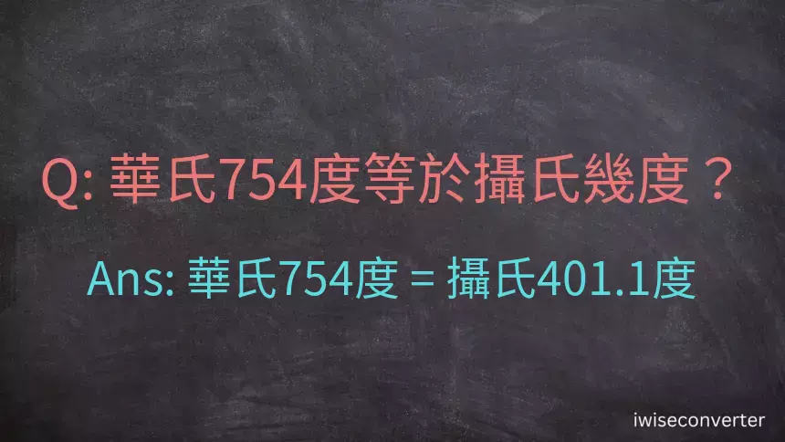 華氏754度減去 32 再乘上 5/9 等於攝氏401.1度。