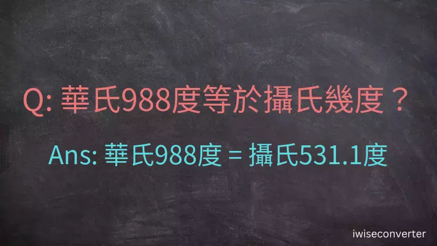 攝氏531.1度乘以 9/5 後 + 32 等於華氏988度。