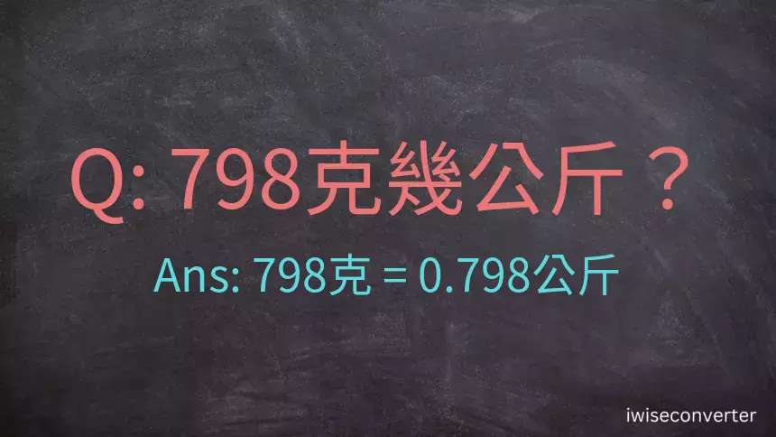 | 798克 | 0.798公斤(kg) | 798克轉公斤 |